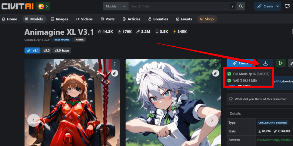 Civitai より、モデルと VAE ファイルをダウンロードしてきます。